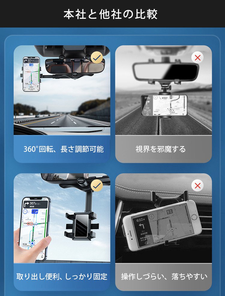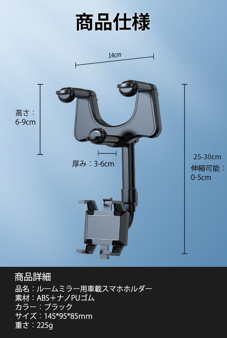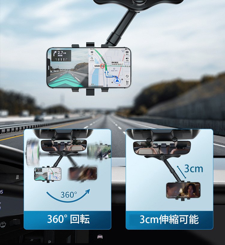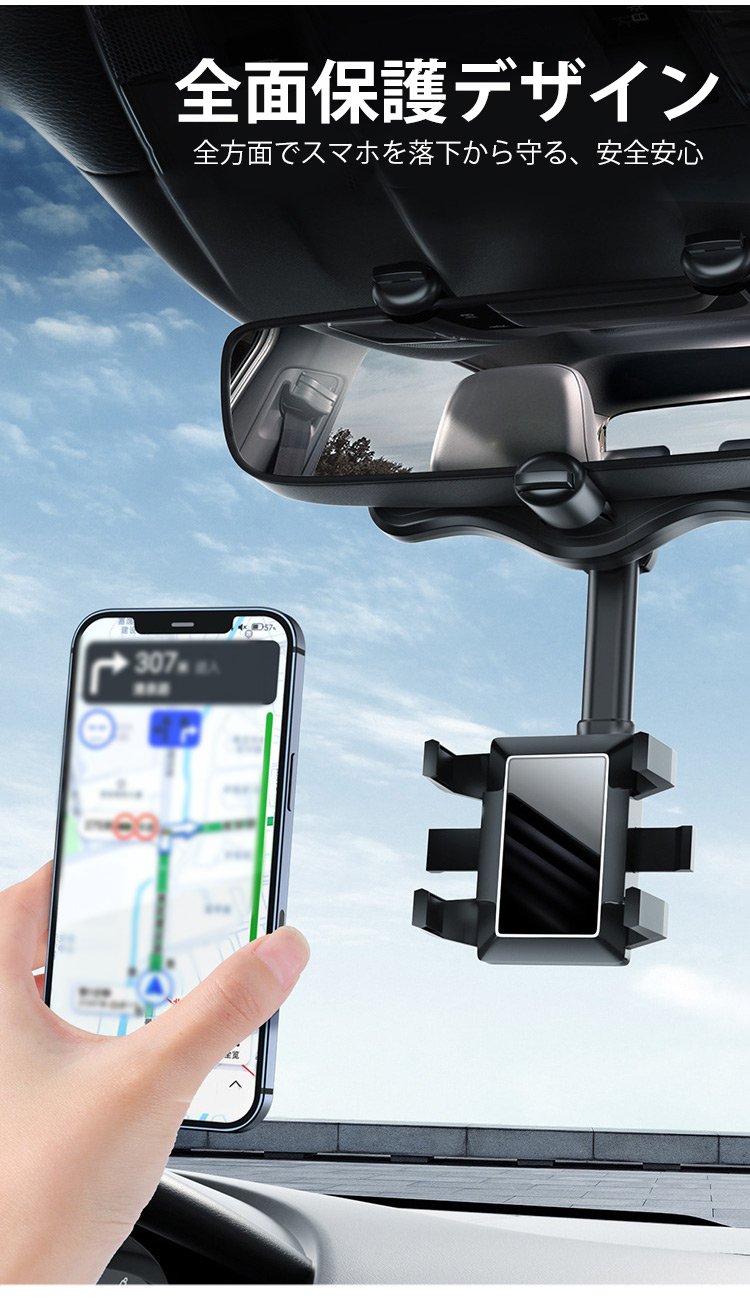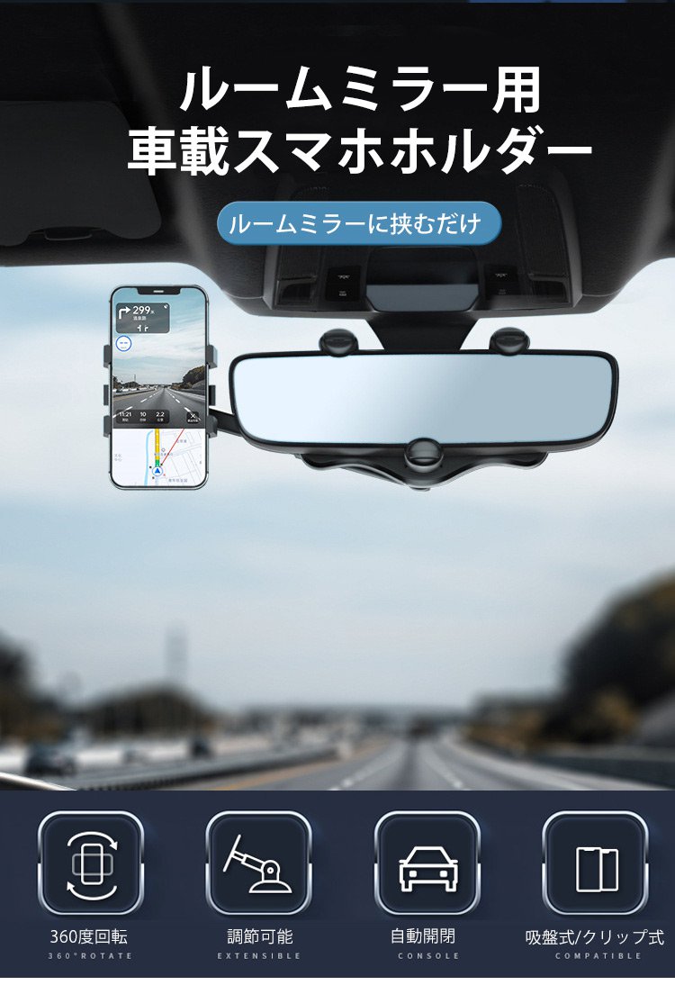 ルームミラー用車載スマホホルダー