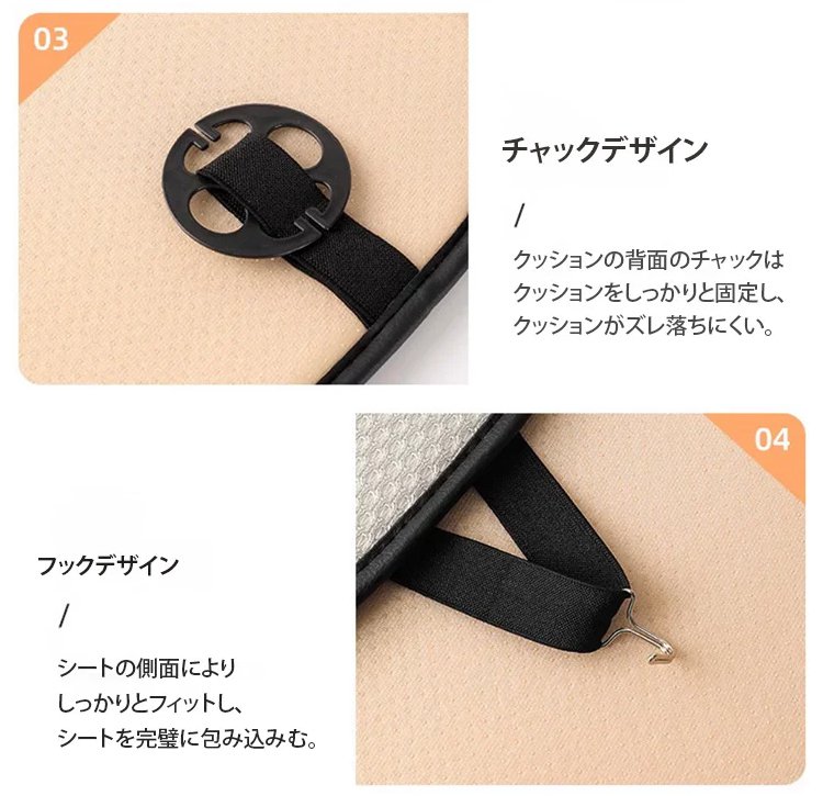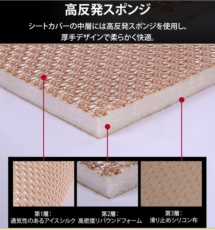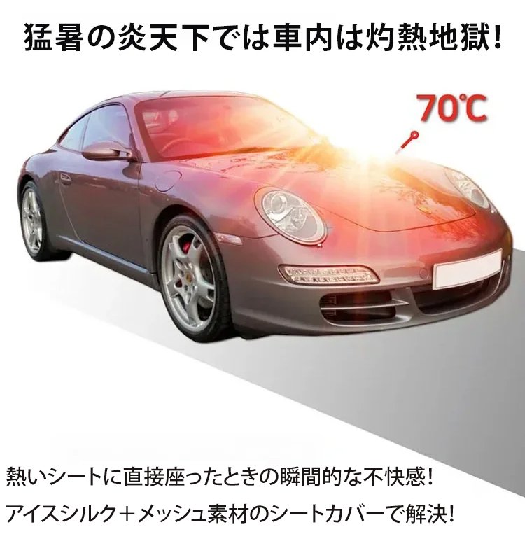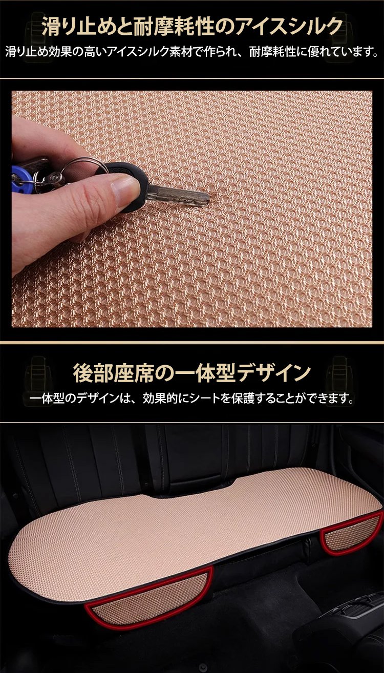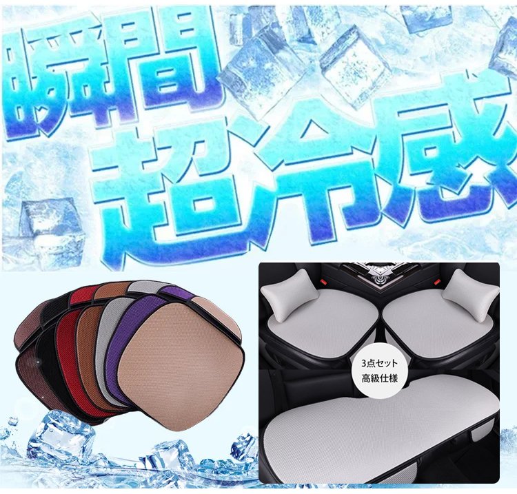 アイスシルクカーシートカバー3点セット(背もたれクッション付き)